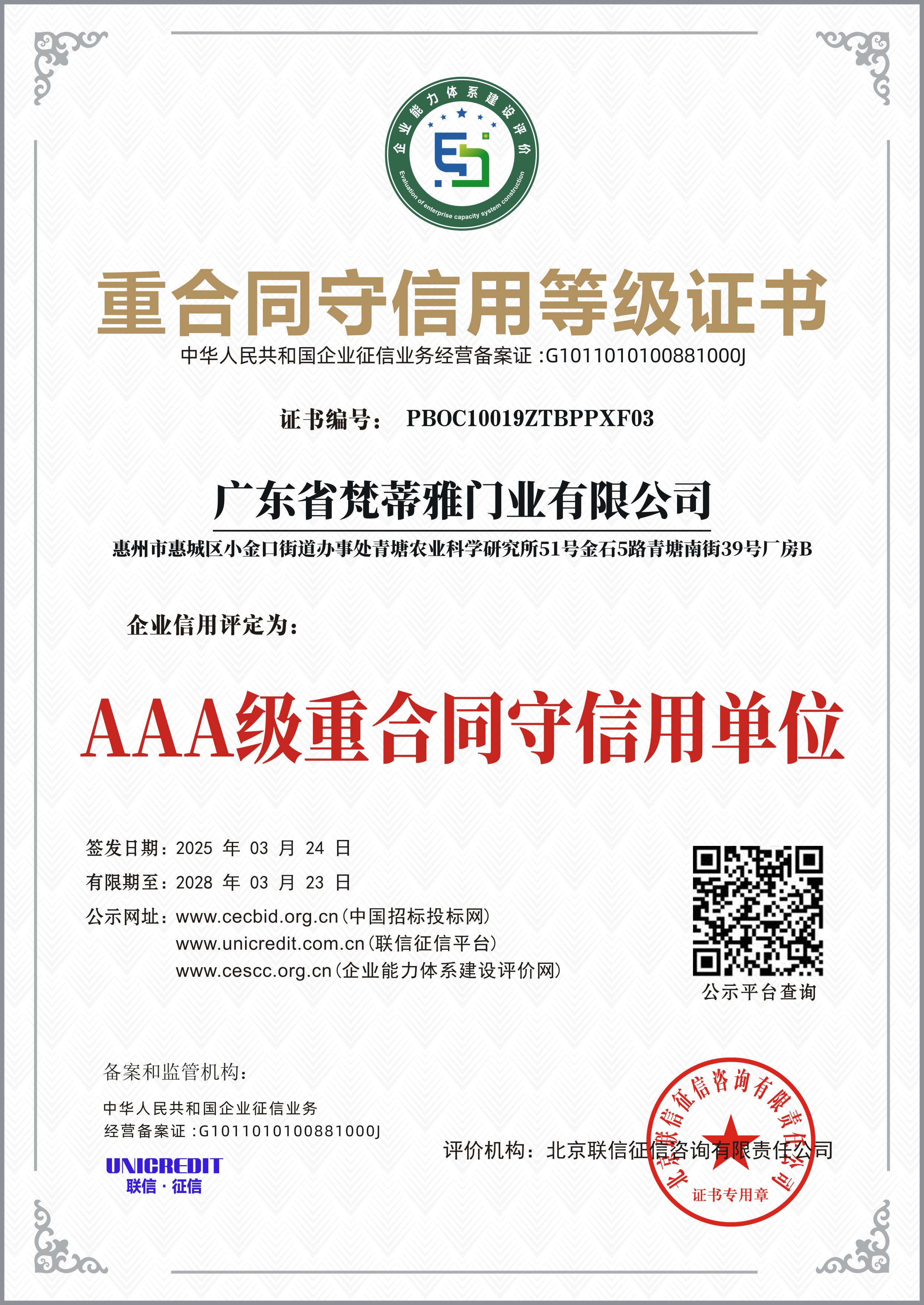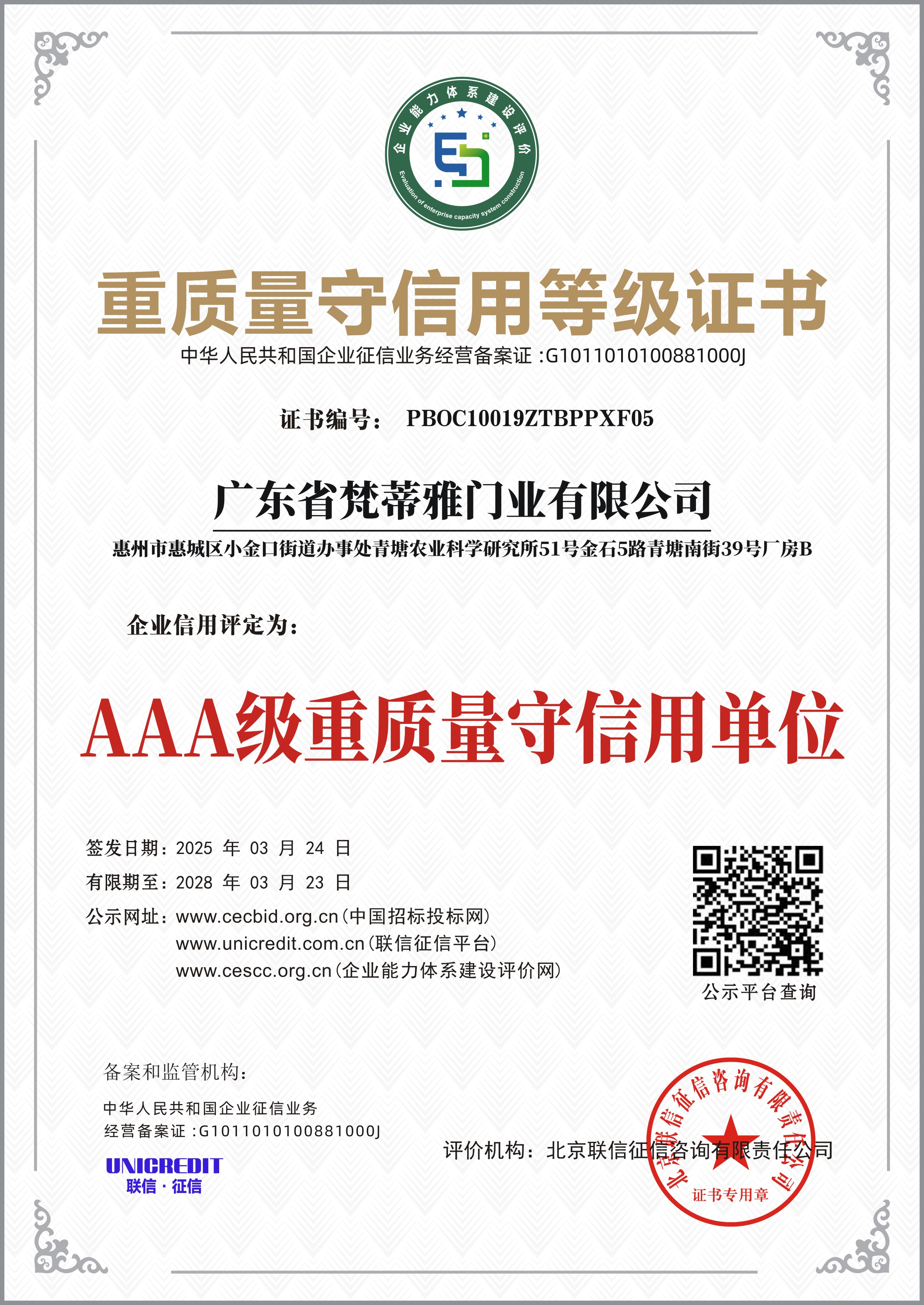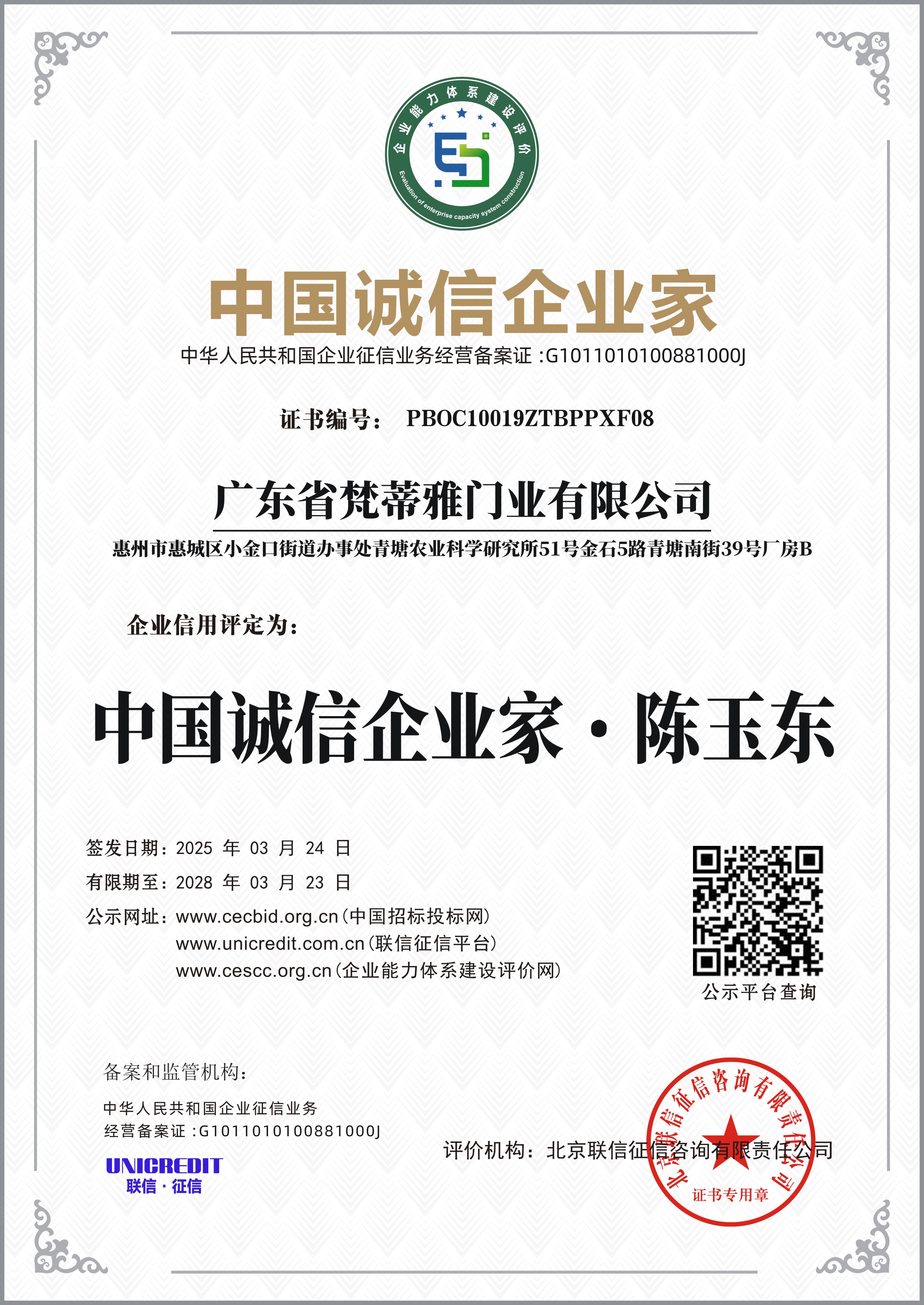 Компания Guangdong Fantiya Door Industry Co., Ltd. продолжит придерживаться философии бизнеса «стремления к совершенству и достижения совершенства», постоянно повышать качество продукции и уровень обслуживания, а также стремиться создать ведущий бренд в дверной промышленности Китая, создавая более безопасные, более комфортные и лучшие условия для жизни потребителей.